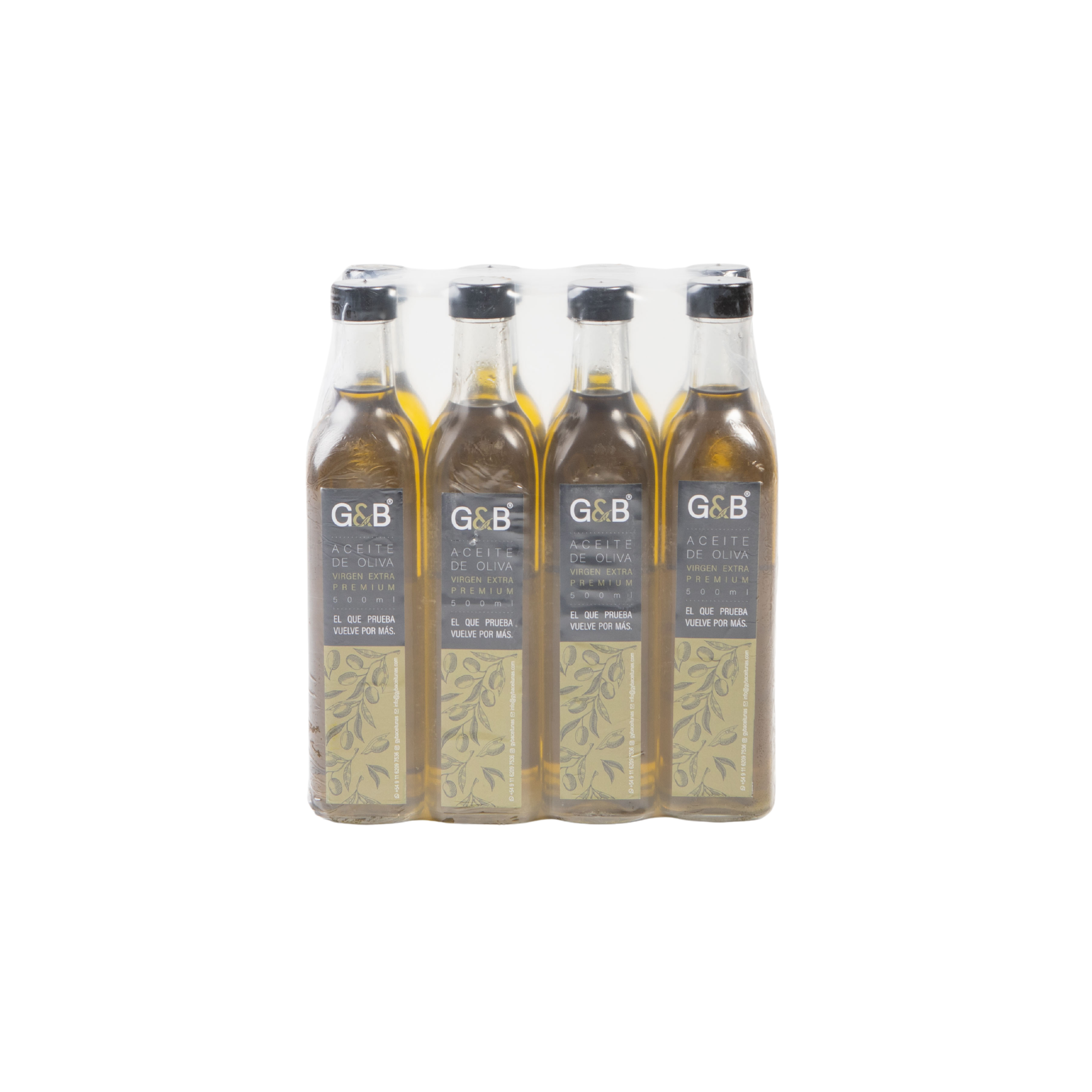Pack x 8 botellas de Aceite de Oliva Extra Virgen x 500cc Vidrio